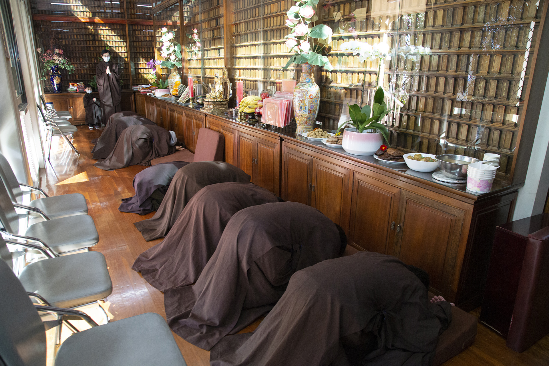 ▲ 7 月 26 日上午,澳洲淨宗學院於講堂內舉辦「追思活動」。首先,禮請法師代表恭讀疏文。